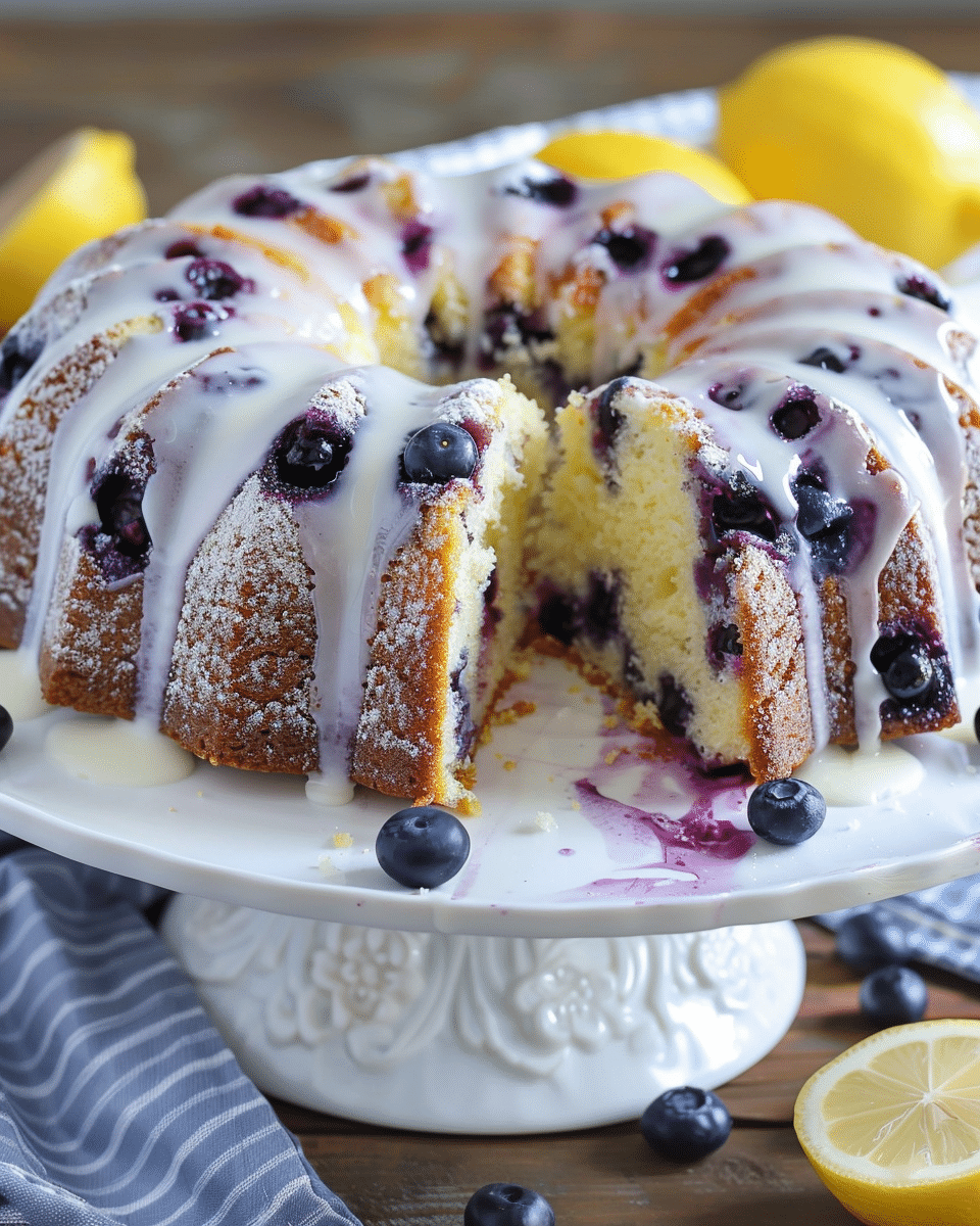 I love this cake because it brings together two flavors that always feel refreshing and satisfying: lemon and blueberry. The crumb is moist and delicate, thanks to the perfect balance of butter, eggs, and a touch of milk mixed with lemon juice. I also like that it’s baked in a loaf pan, which makes it less fussy than a Bundt cake but still looks elegant when sliced. The glaze adds just the right amount of zing without overpowering the sweetness of the cake.