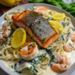 This Lemon Garlic Salmon & Shrimp Alfredo is a rich, creamy pasta dish that balances indulgent Alfredo sauce with bright citrus and tender seafood. Juicy salmon, succulent shrimp, and silky noodles come together in a restaurant-quality meal that feels special yet is simple enough for a weeknight dinner.