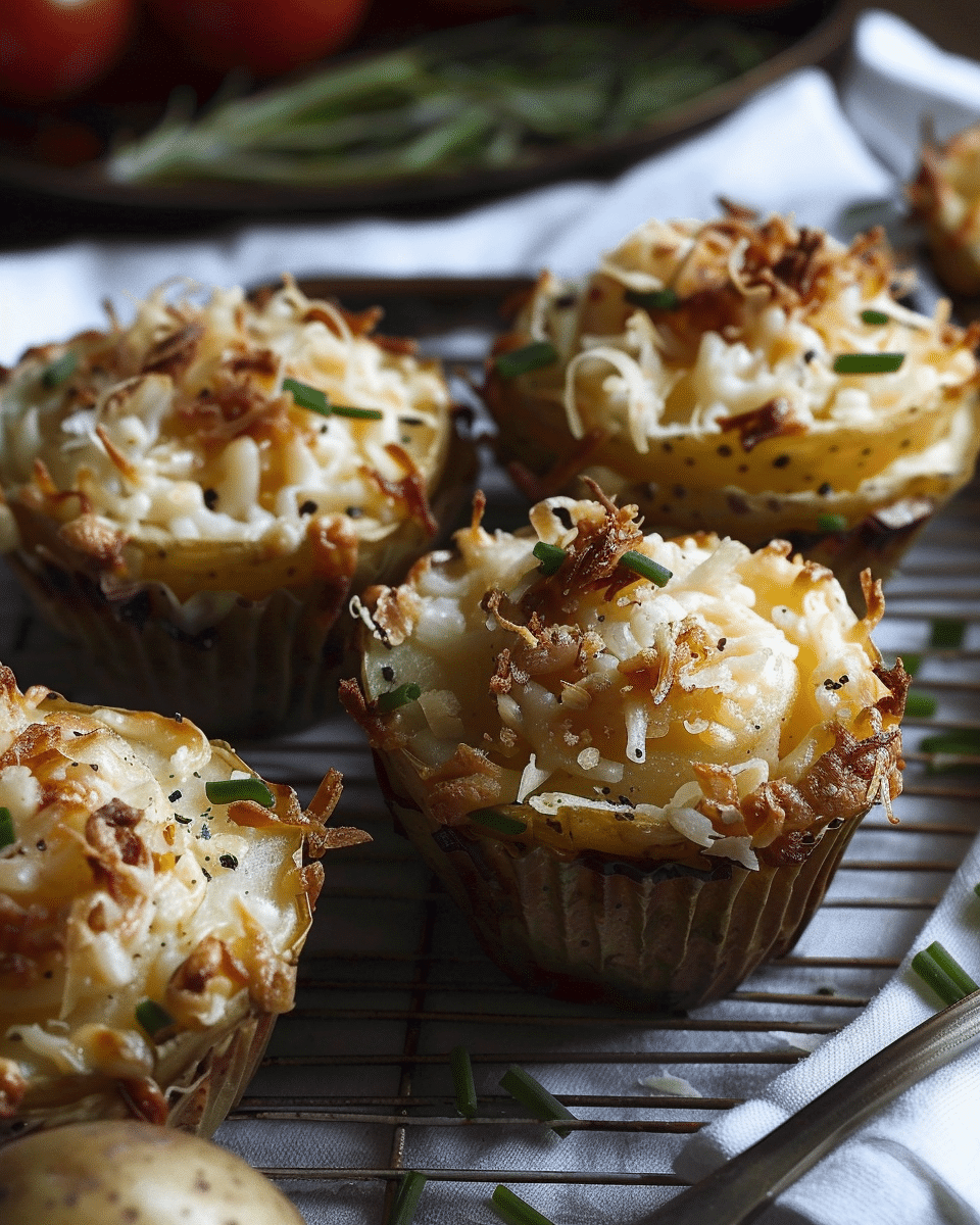 These loaded potato cups are crispy on the outside, tender on the inside, and filled with flavorful toppings that make them an ideal appetizer for gatherings. Each bite offers the delicious experience of a classic baked potato in a convenient, handheld form.