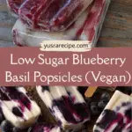These Low Sugar Blueberry Basil Popsicles are a refreshing, plant-based frozen treat made with simple, wholesome ingredients. Naturally sweetened with blueberries and monk fruit, and infused with aromatic basil, they’re a perfect guilt-free snack or summer dessert.