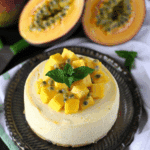 This no-churn Mango and Passionfruit Ice Cream Cake features a creamy mango–banana filling over a crunchy amaretti and hazelnut crust, topped with fresh mango cubes and passionfruit pulp. It’s a refreshing tropical dessert perfect for summer gatherings or make-ahead treats.