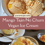 This Mango Tajin No-Churn Vegan Ice Cream is a tropical, spicy-sweet frozen dessert made with juicy mango, creamy coconut, and a swirl of zesty Tajin seasoning. It’s dairy-free, simple to make, and packed with bold, refreshing flavor—no ice cream maker required.