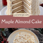 With its comforting combination of maple and almond flavours, this cake brings warmth and elegance to any occasion. Whether you’re serving it at brunch, dinner, or as a cozy dessert, it’s sure to impress. The moist crumb, subtle nutty notes and creamy frosting make this cake a standout — and once you try it, it might become your new favourite go-to dessert. Enjoy every slice!