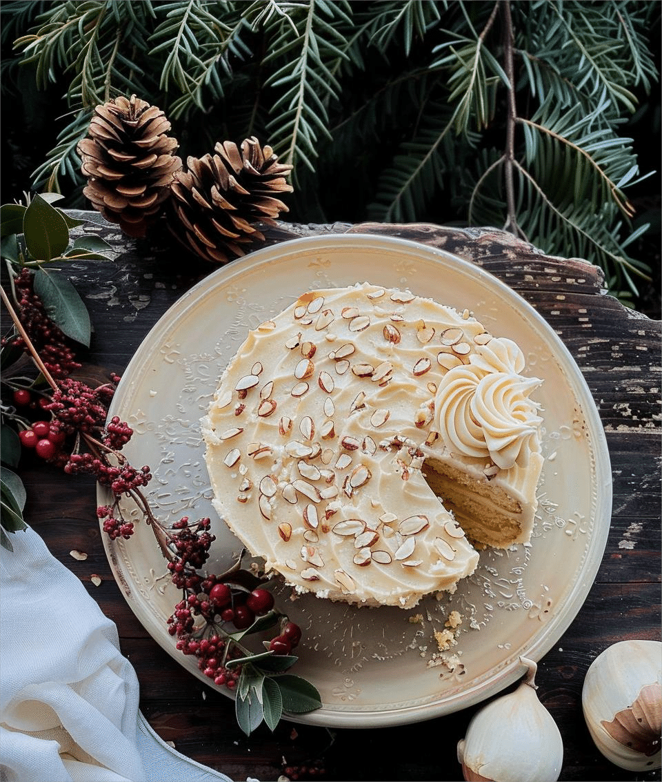 A moist and tender cake featuring the warm, nutty flavors of maple syrup and almonds. With a hint of almond extract and an elegant almond-cream-cheese frosting, this dessert is perfect for gatherings or a special treat.