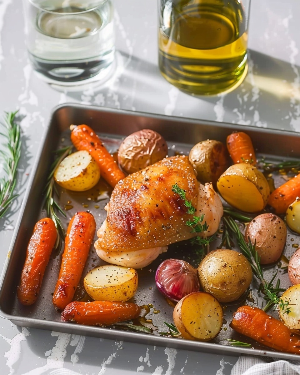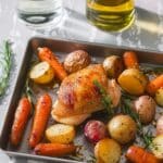 Place the chicken, potatoes, and carrots on the prepared sheet pan.