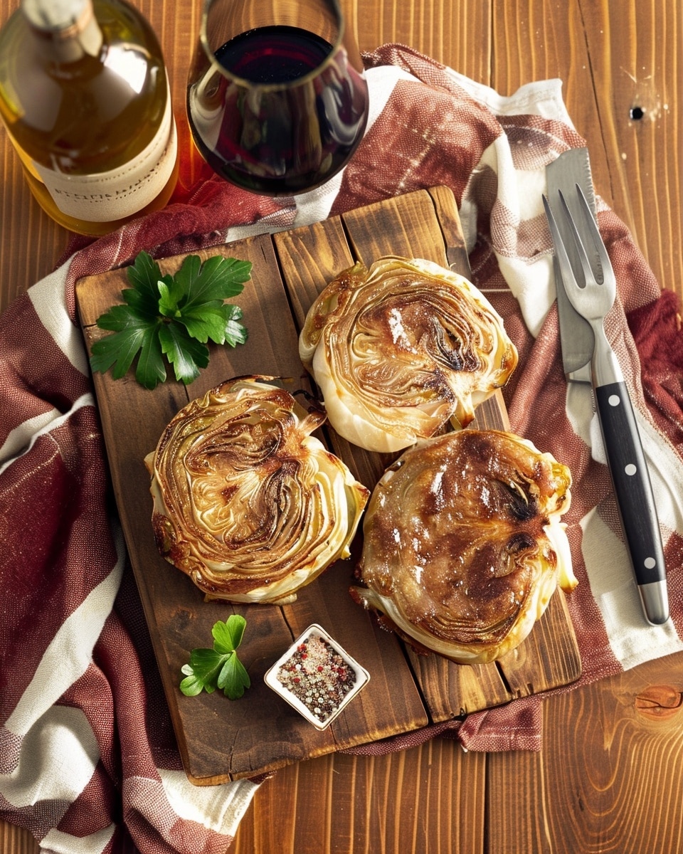 Maple Mustard Roasted Cabbage Steaks prove that simple vegetables can become the star of the table. With their caramelized edges, sweet and tangy glaze, and crunchy pecan topping, this dish delivers bold flavor and satisfying texture in every bite. Whether served as a holiday centerpiece or a nourishing weeknight meal, these cabbage steaks are sure to impress.