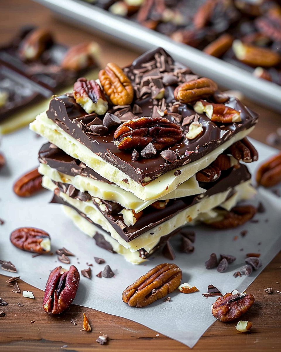 This recipe comes together quickly with minimal effort and no special equipment. The contrast between smooth melted chocolate and crunchy pecans makes every bite exciting. Maple syrup adds natural sweetness and a unique depth of flavor that elevates this bark beyond ordinary chocolate treats. It’s also easy to customize with your favorite toppings.