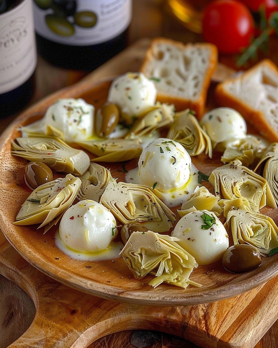 This vibrant Mediterranean-inspired dish brings together creamy mozzarella, tender artichokes, and briny olives in a fragrant marinade that bursts with flavor. It’s a simple yet elegant recipe that works beautifully as an appetizer, side dish, or part of a mezze platter. With minimal preparation and maximum taste, it’s perfect for both casual gatherings and special occasions.