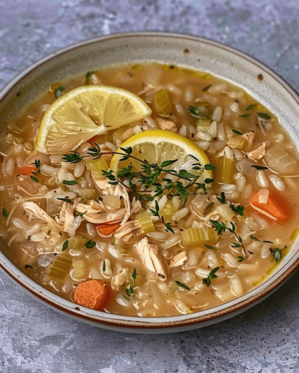 This soup is warming without being heavy, thanks to the citrusy lemon juice and aromatic herbs. It comes together with simple pantry ingredients, uses cooked chicken to save time, and delivers a creamy texture without any dairy. The flavors are clean, vibrant, and deeply comforting.