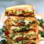 This MEGA Chicken Pesto Grilled Cheese Sandwich is an indulgent yet simple recipe that transforms everyday ingredients into a mouthwatering, melty, pesto-infused delight. With its crisp bread, creamy mozzarella, and flavorful chicken filling, it’s the perfect go-to meal whenever you want something comforting, fast, and irresistibly satisfying.