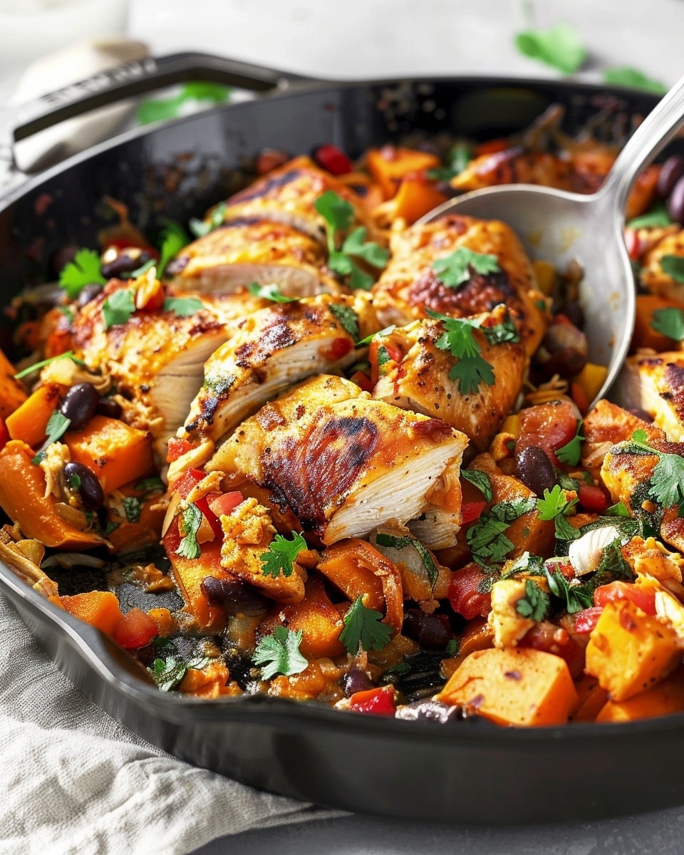 This Mexican Chicken and Sweet Potato Skillet is a bold, colorful one-pan dinner packed with lean protein, hearty sweet potatoes, and vibrant spices. It’s a wholesome, gluten-free meal that delivers big flavor with minimal cleanup, making it perfect for busy weeknights.