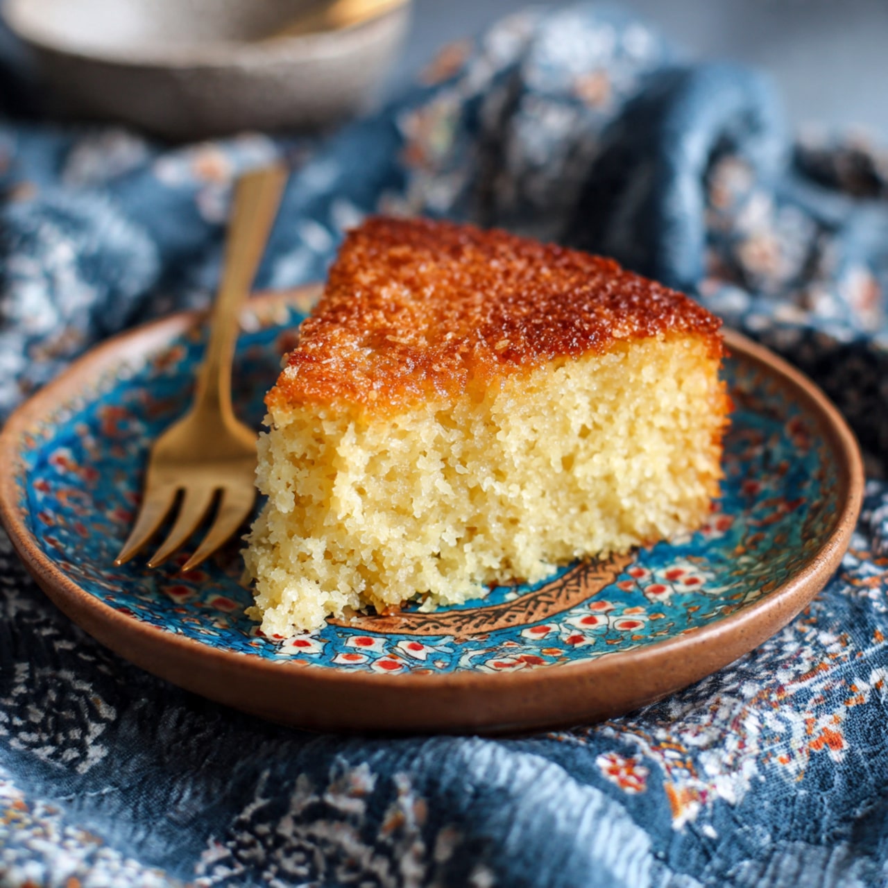 Basbousa pairs well with tea, coffee, or lightly sweetened milk drinks.