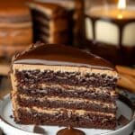 A rich and indulgent midnight fudge cake with a moist, deeply chocolatey base topped with a smooth, luscious fudge frosting for the ultimate dessert experience.