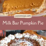 This Milk Bar-inspired pumpkin pie features a creamy, spiced pumpkin filling, a buttery graham cracker crust, and a crunchy cinnamon topping. With layered textures and bold fall flavors, it’s a standout dessert for holidays or cozy gatherings.