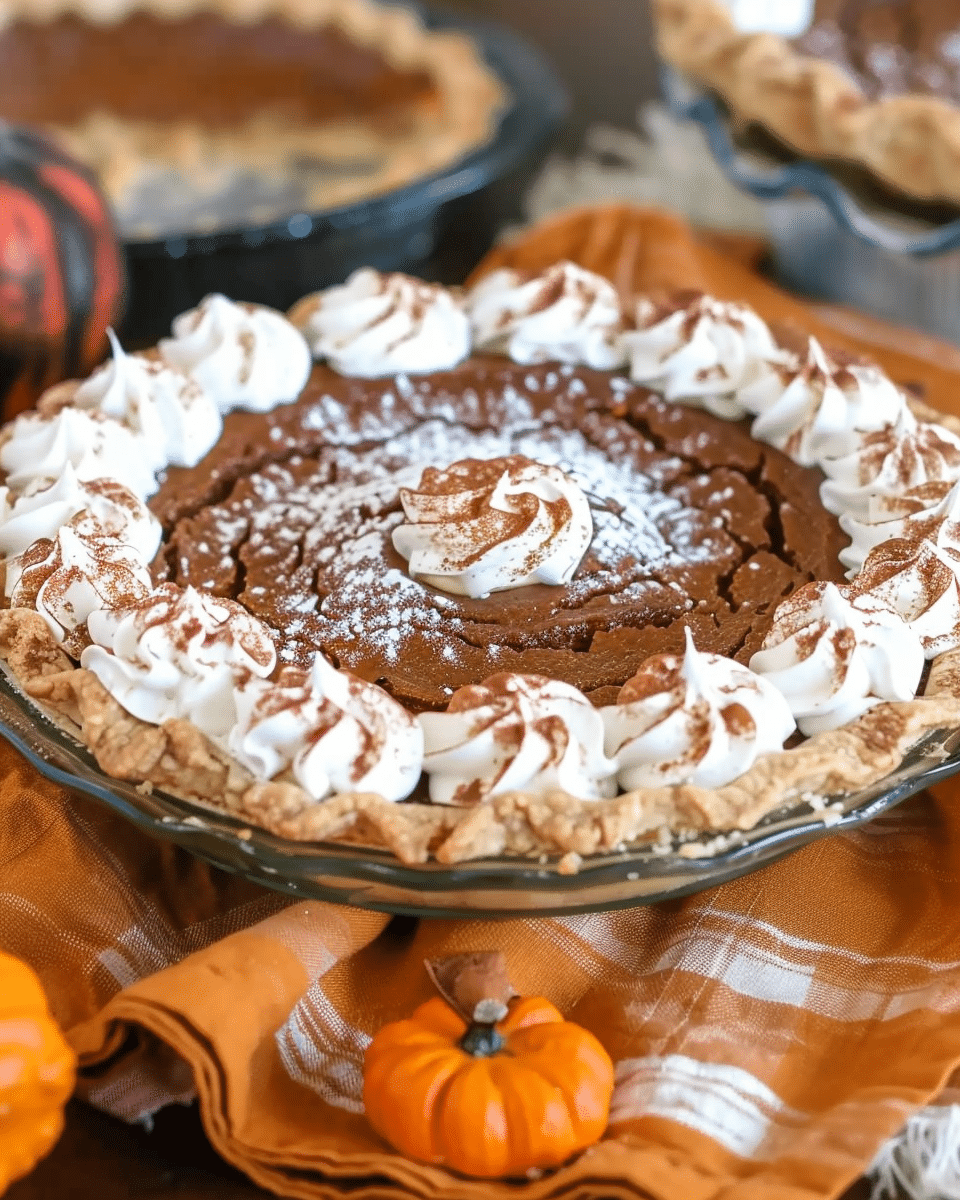 This indulgent pumpkin pie puts a playful spin on the classic fall dessert with a creamy, spiced pumpkin filling, a buttery graham cracker crust, and a crunchy cinnamon topping. Inspired by bakery-style treats, it delivers rich flavor and contrasting textures that make every bite memorable and perfect for cozy gatherings or holiday tables.