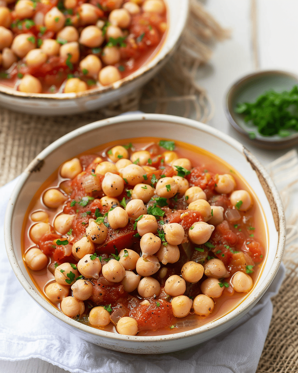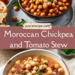 This hearty Moroccan Chickpea Tomato Stew features chickpeas simmered in a spiced tomato sauce with cumin, coriander, and cinnamon. It’s a warm, plant-based one-pot meal perfect with grains or flatbread.