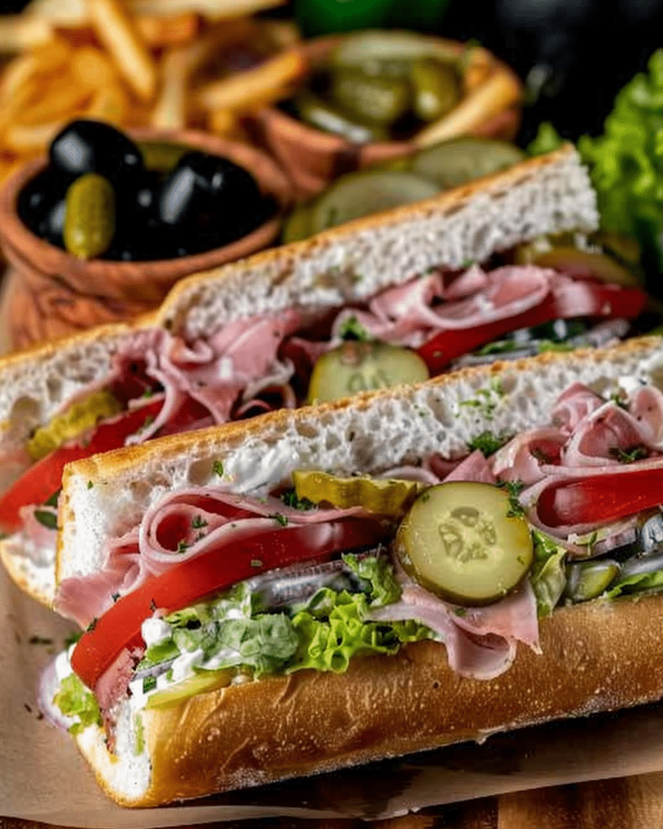 This sandwich is easy to assemble with no cooking required, yet it delivers complex, restaurant-quality flavor. The olive salad adds tang, richness, and texture, while the layered meats and cheese make every bite satisfying. It is ideal for gatherings, picnics, or make-ahead lunches because it tastes even better after resting.