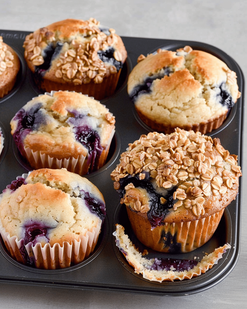 I love how these muffins turn out every time—lightly crisped on the outside, soft and fluffy inside, with sweet bursts of blueberry in every bite. The streusel topping brings a delightful texture and extra flavor, and the combination of sour cream and butter in the batter makes them incredibly tender and rich. It’s a simple recipe with amazing results that works perfectly for breakfast, brunch, or even dessert.