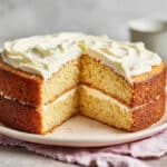 A buttery, soft, and fluffy vanilla cake with a plush crumb that stays moist for up to 4 days. Ideal for birthdays, celebrations, or any occasion, this reliable recipe uses a whipped egg technique and hot milk method for a bakery-style finish.