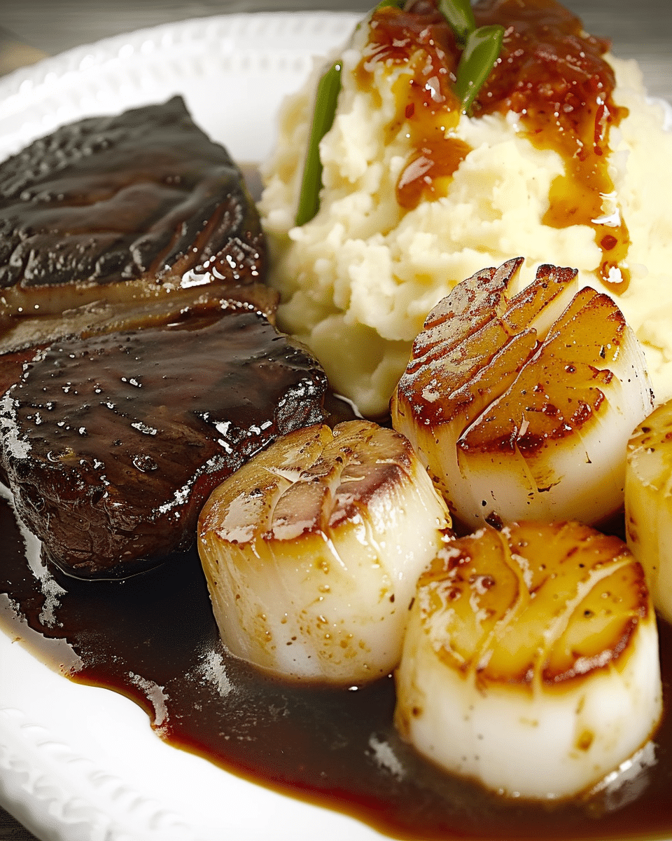 This recipe delivers bold flavor with minimal effort. The contrast between the rich, beefy steak and the delicate sweetness of scallops creates a balanced and impressive dish. It is perfect for special occasions, date nights, or anytime you want a steakhouse-style dinner without leaving your kitchen.