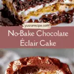 This No-Bake Chocolate Éclair Cake is a luscious, creamy dessert made with layers of vanilla pudding, whipped cream, graham crackers, and a smooth chocolate topping. It’s light, delicious, and incredibly easy to make—no oven required! Perfect for parties, family gatherings, or a simple make-ahead treat.