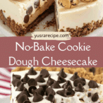 You’ll love this cheesecake because it combines two favorites—cookie dough and cheesecake—into one effortless, oven-free treat. There’s no baking required, making it perfect for warmer days or when you’d rather skip the oven. The cookie dough pieces add a playful, chewy texture, while the creamy cheesecake filling balances it with smooth richness. And the topping? Whipped cream + chocolate chips + fudge = pure dessert joy.