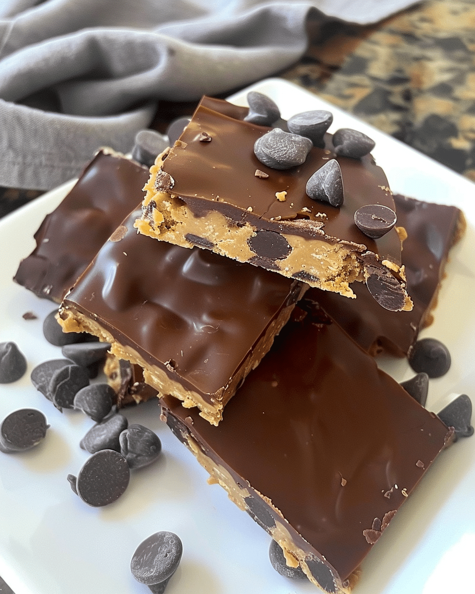 These bars come together quickly without turning on the oven, making them ideal for busy days or warm weather. They’re naturally low in carbs, require minimal ingredients, and deliver a perfect balance of peanut butter and chocolate. The texture is smooth yet firm, and they store beautifully for make-ahead treats.