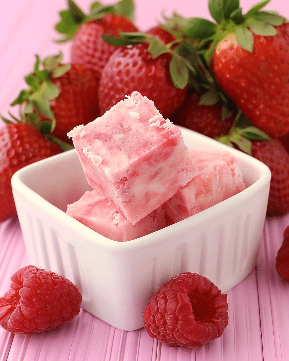 This fudge is incredibly easy to make and comes together in minutes. The smooth, creamy base pairs perfectly with the fruity strawberry swirl, creating a balanced sweetness that isn’t overpowering. Since it’s a no-bake recipe, it’s ideal for warm days or when you need a fast dessert. It also slices beautifully, making it great for parties and dessert platters.