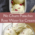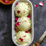This no churn pistachio rose water ice cream is an elegant and easy frozen dessert infused with floral rose water, warm cardamom, and crunchy pistachios. With no ice cream maker required, it’s a quick, aromatic treat perfect for summer or special occasions.