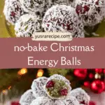 These no-bake Christmas energy balls are naturally green from matcha and pistachios, sweetened with honey or maple syrup, and coated in festive red-and-white cranberry coconut. Perfect for a healthy holiday snack or make-ahead gift.