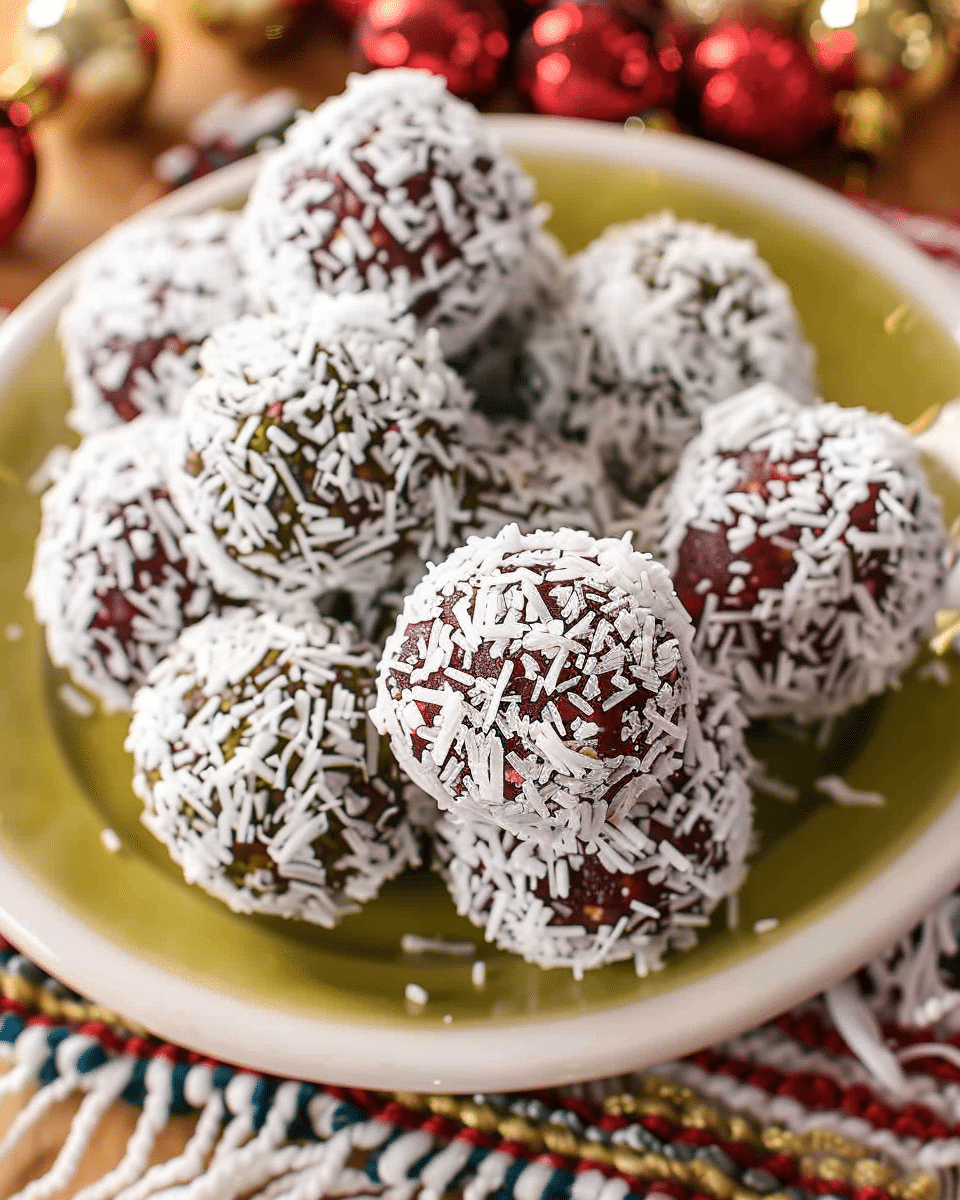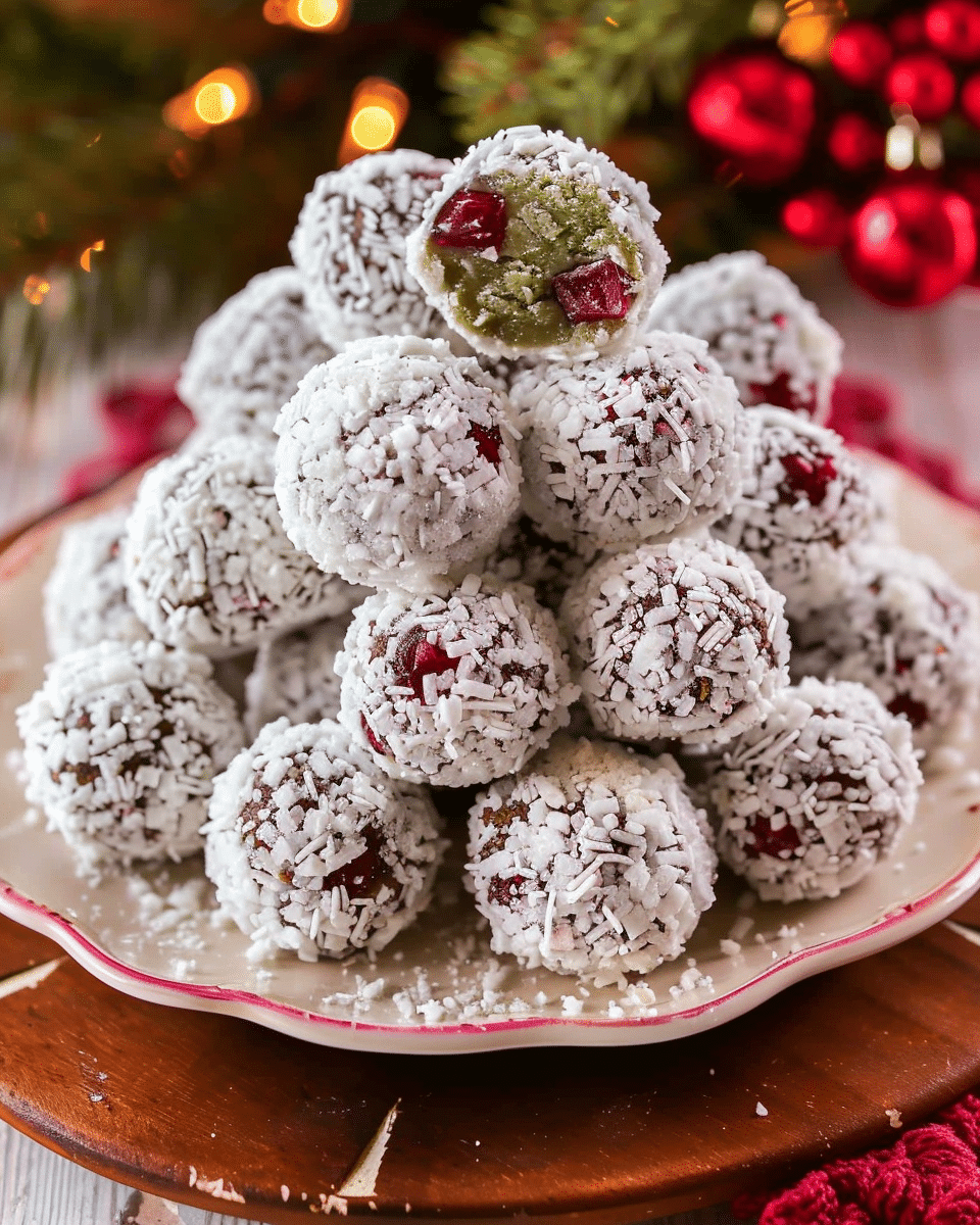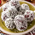 These festive little bites are naturally green, lightly sweet, and finished with a pretty red-and-white cranberry coconut coating. They’re a quick, no-bake treat that feels special for the holidays, but they’re simple enough to make anytime you want a satisfying snack.