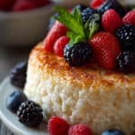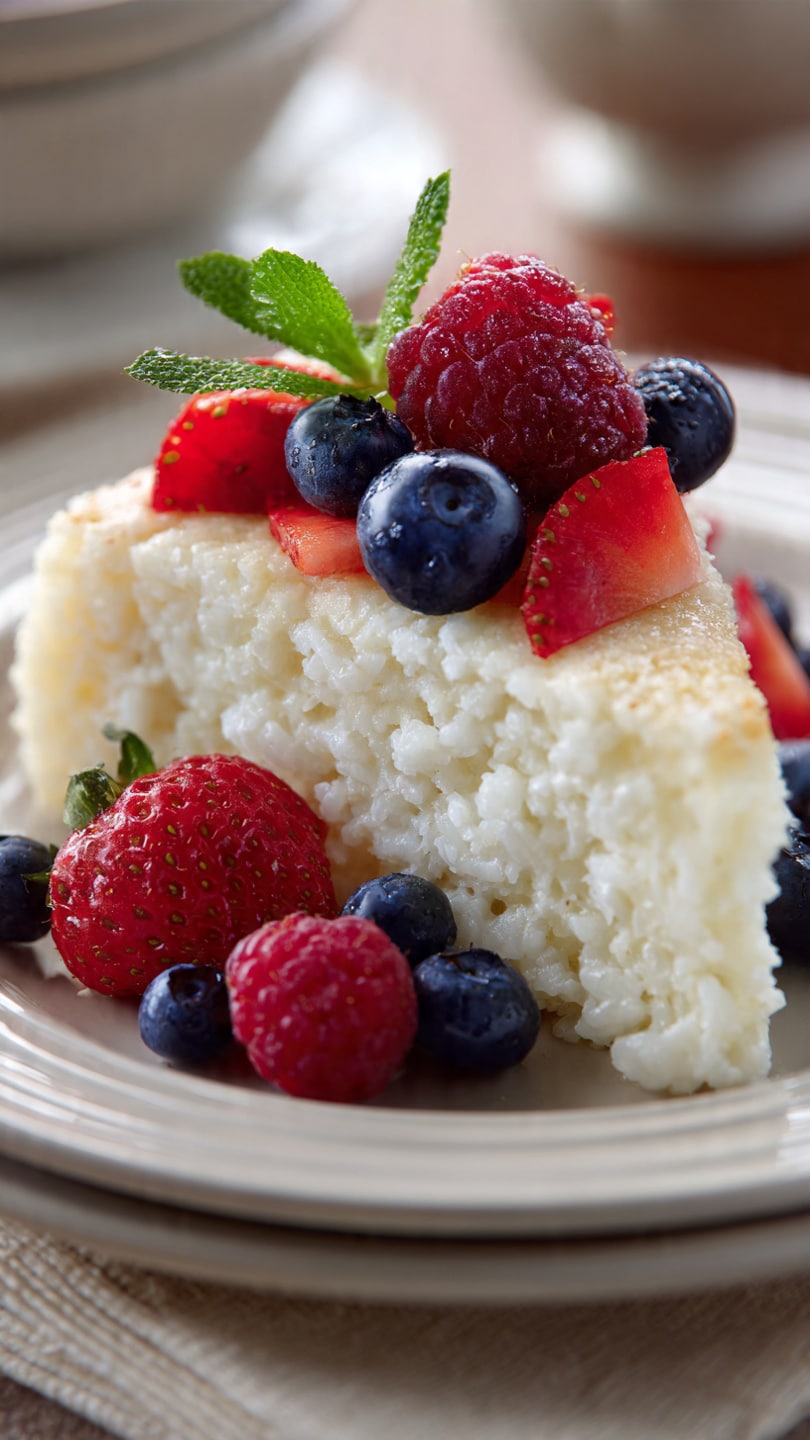 Orange Blossom Rice Pudding Cake with Fresh Berries is a beautiful fusion of comfort and elegance. With its creamy texture, floral aroma, and fresh fruit topping, it is a dessert that feels special yet approachable. Whether served at a summer gathering or as a refreshing finale to a meal, this cake is sure to impress every slice.