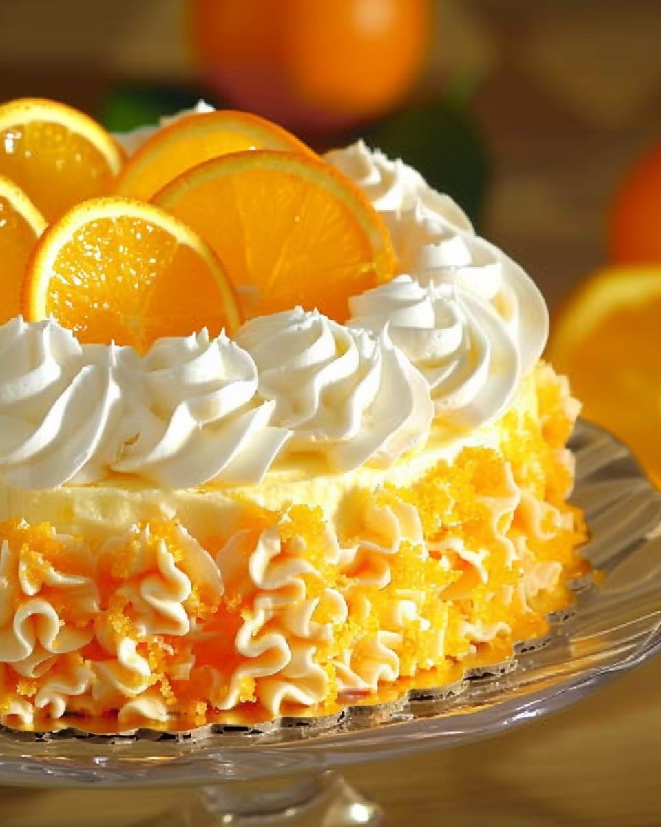 A soft, citrusy cake that captures the nostalgic flavor of a classic creamsicle, combining bright orange zest with smooth vanilla cream. This dessert is refreshing, light, and perfect for gatherings or a sweet treat at home.