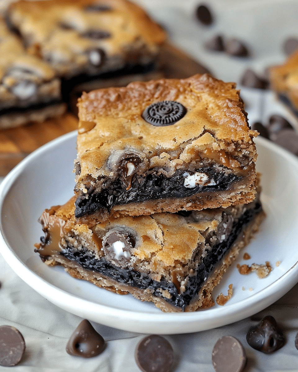 Oreo and Caramel Stuffed Chocolate Chip Cookie Bars combine layers of chewy cookie dough, gooey caramel, and crunchy Oreos for a rich, indulgent dessert bar that’s easy to make and guaranteed to impress.