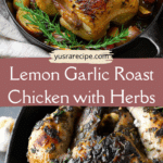 This oven-roasted whole chicken is a classic recipe that delivers juicy, tender meat and beautifully crispy skin every time. Infused with the bold flavors of lemon, garlic, and a generous bundle of fresh herbs, I find it’s the perfect comforting main dish whether I’m hosting a dinner or making a cozy meal for the family. The two-stage roasting method ensures golden, flavorful skin and perfectly cooked meat from the inside out.