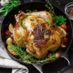 This oven-roasted whole chicken is infused with lemon, garlic, and herbs for juicy, flavorful meat and perfectly crispy skin. It’s a simple yet classic dish ideal for both family dinners and entertaining.