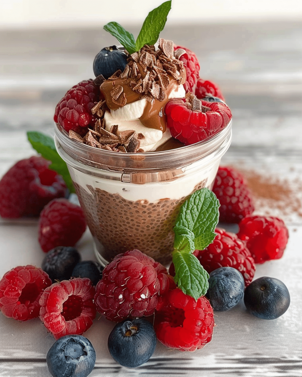 This Overnight Chocolate Chia & Berry Parfait is a creamy, chocolatey, and nutritious make-ahead treat layered with tangy yogurt, fresh berries, and crunchy cacao nibs. It’s perfect for breakfast, a snack, or a healthy dessert.