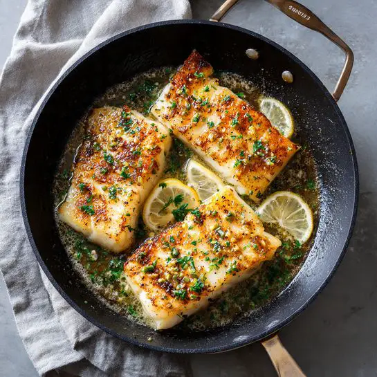 A quick and elegant pan-seared white fish recipe with crispy skin and tender, flaky meat, finished with a lemon butter caper sauce. Perfect for weeknight meals or special dinners.