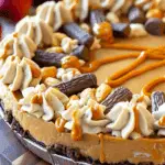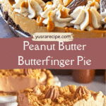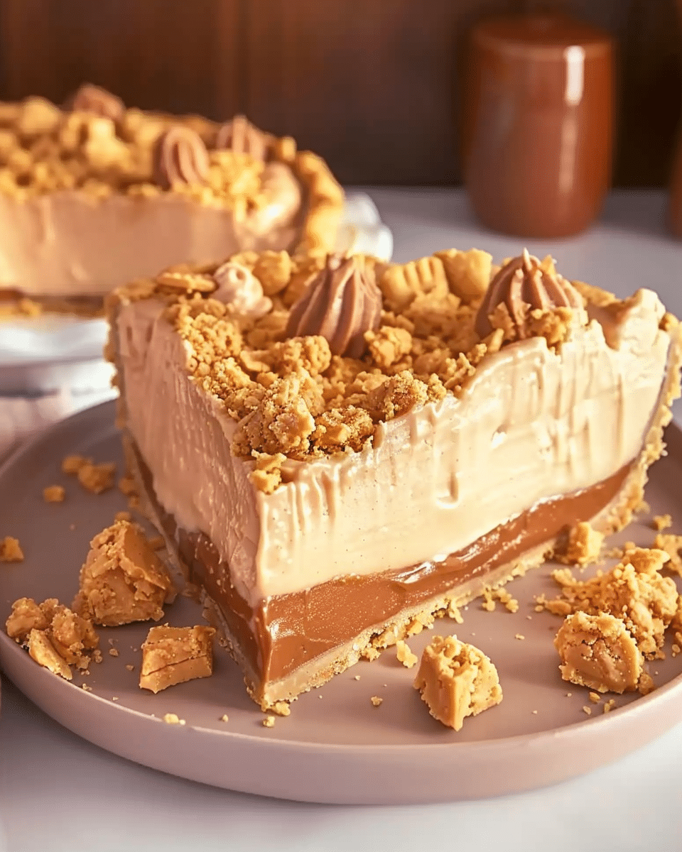 A creamy, no-bake dessert combining rich peanut butter filling with crunchy Butterfinger candy, all nestled in a buttery crust.