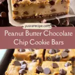 These peanut butter chocolate chip cookie bars are soft, chewy, and packed with rich peanut butter flavor and melty chocolate chips in every bite. They combine the classic taste of peanut butter cookies with the ease of a simple bar recipe, making them perfect for gatherings, lunchboxes, or a quick homemade dessert.