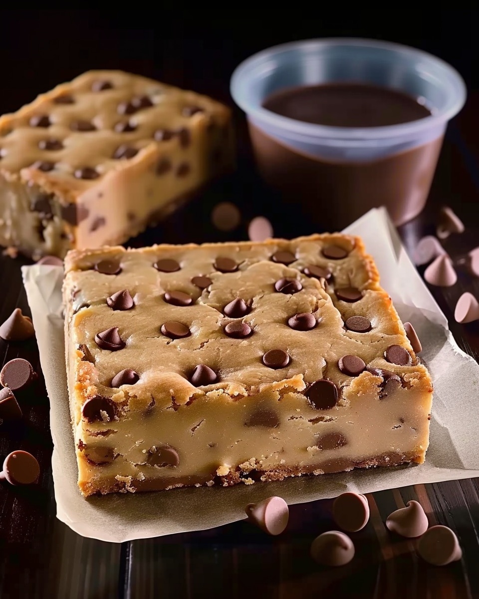 Soft and chewy peanut butter cookie bars loaded with melty chocolate chips, combining rich peanut butter flavor with the ease of a simple slice-and-serve dessert.