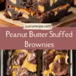 These peanut butter stuffed brownies are rich, fudgy, and intensely chocolatey, with a hidden layer of creamy peanut butter cups baked right into the center. Finished with a smooth chocolate topping and extra peanut butter cups, they deliver a bakery-style dessert that feels indulgent yet easy to make at home.