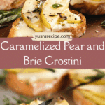 Pear and brie crostini is an elegant, bite-sized appetizer that combines sweet, savory, and tangy flavors on a crisp toasted baguette. Slices of creamy brie and fresh pear are layered on garlic-infused crostini, then lightly broiled and finished with a drizzle of balsamic reduction and fragrant herbs. It’s a beautiful dish that’s simple to prepare yet sophisticated enough for any special occasion.