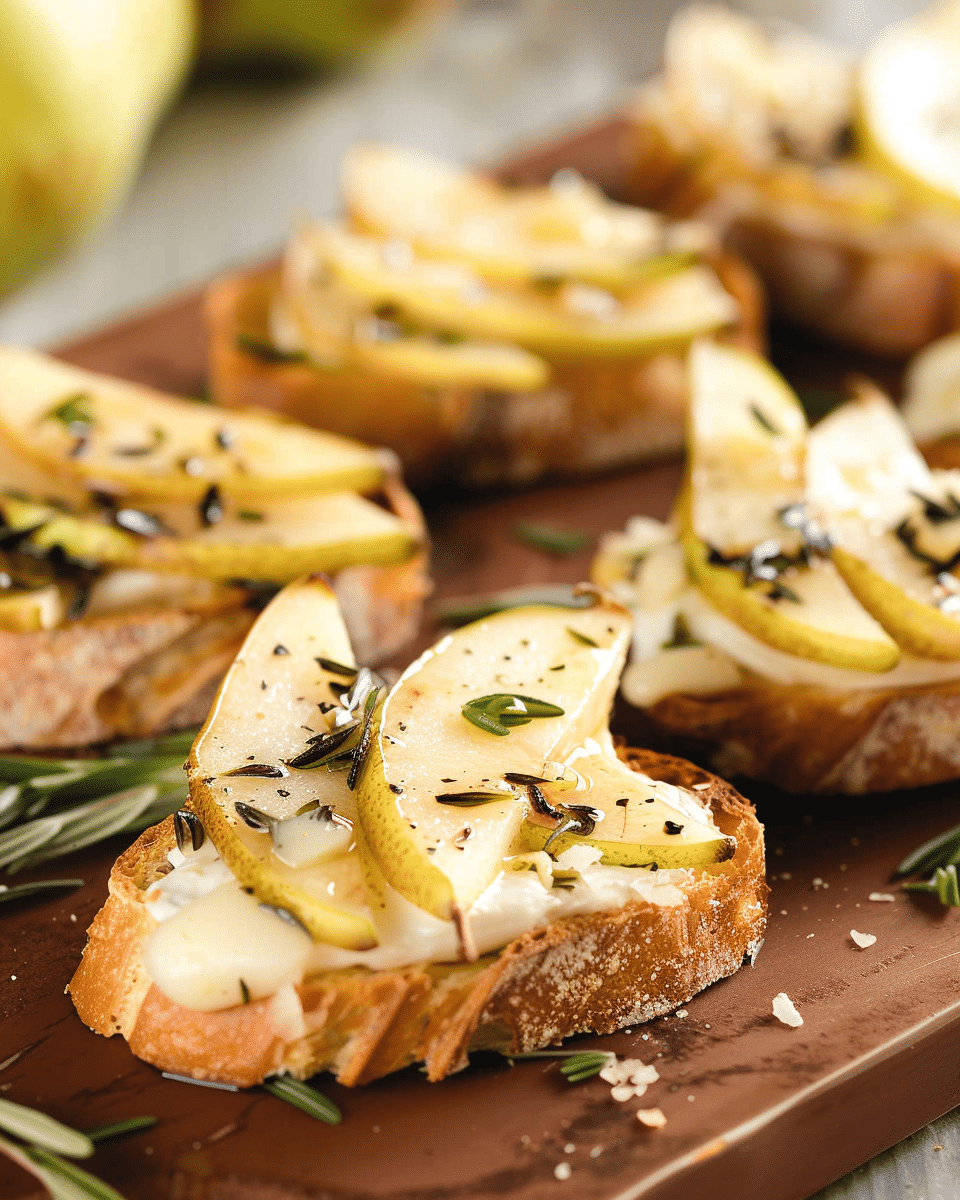 Final broil: Return the crostini to the oven one final time for 2–3 minutes, just to slightly soften the pears and crisp the edges. Watch carefully to avoid burning.