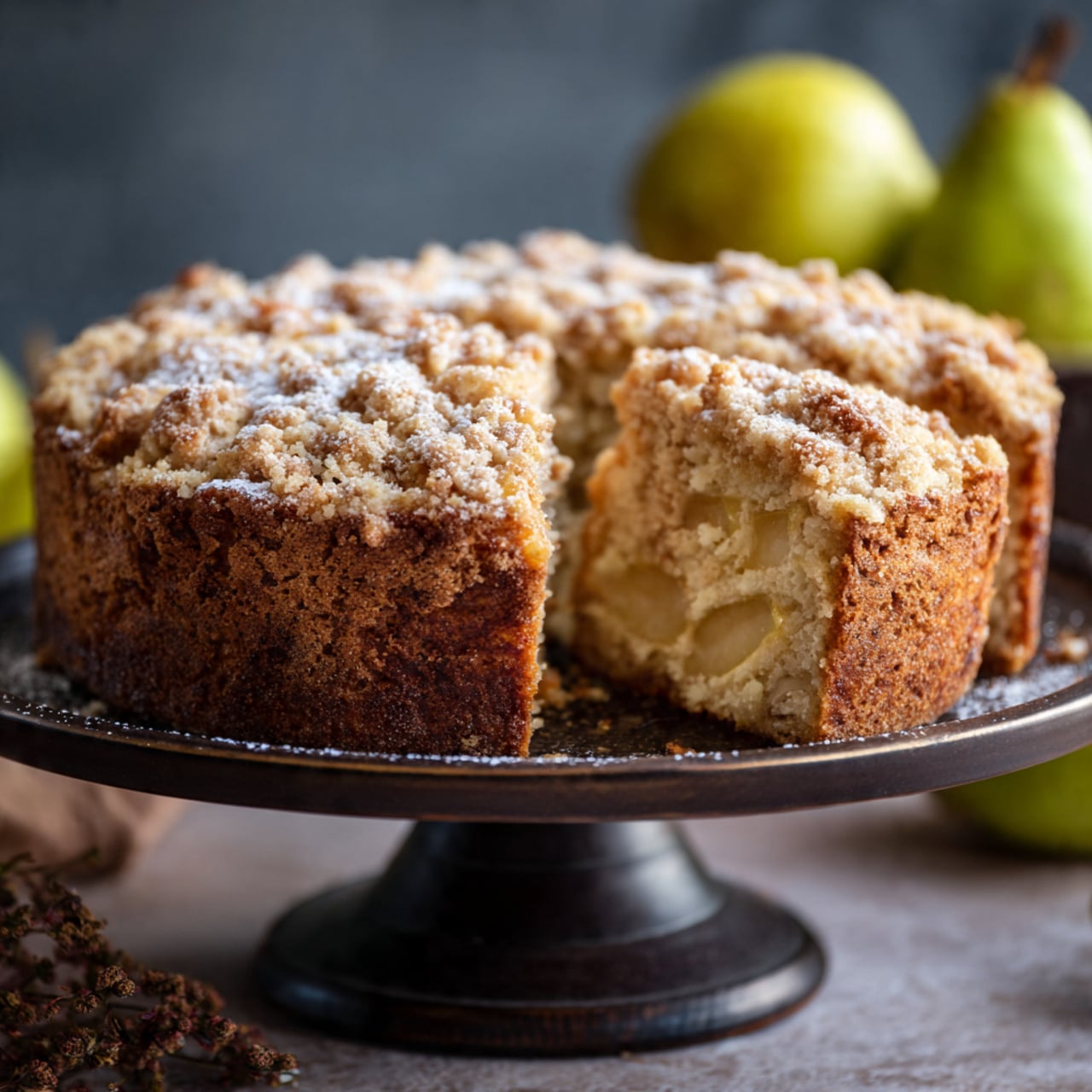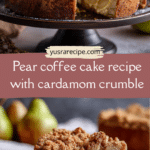 Pear Coffee Cake with Cardamom Crumble is a moist, spiced cake made with fresh pears and topped with a buttery, aromatic crumble. It’s perfect for brunch, dessert, or cozy mornings with coffee or tea.