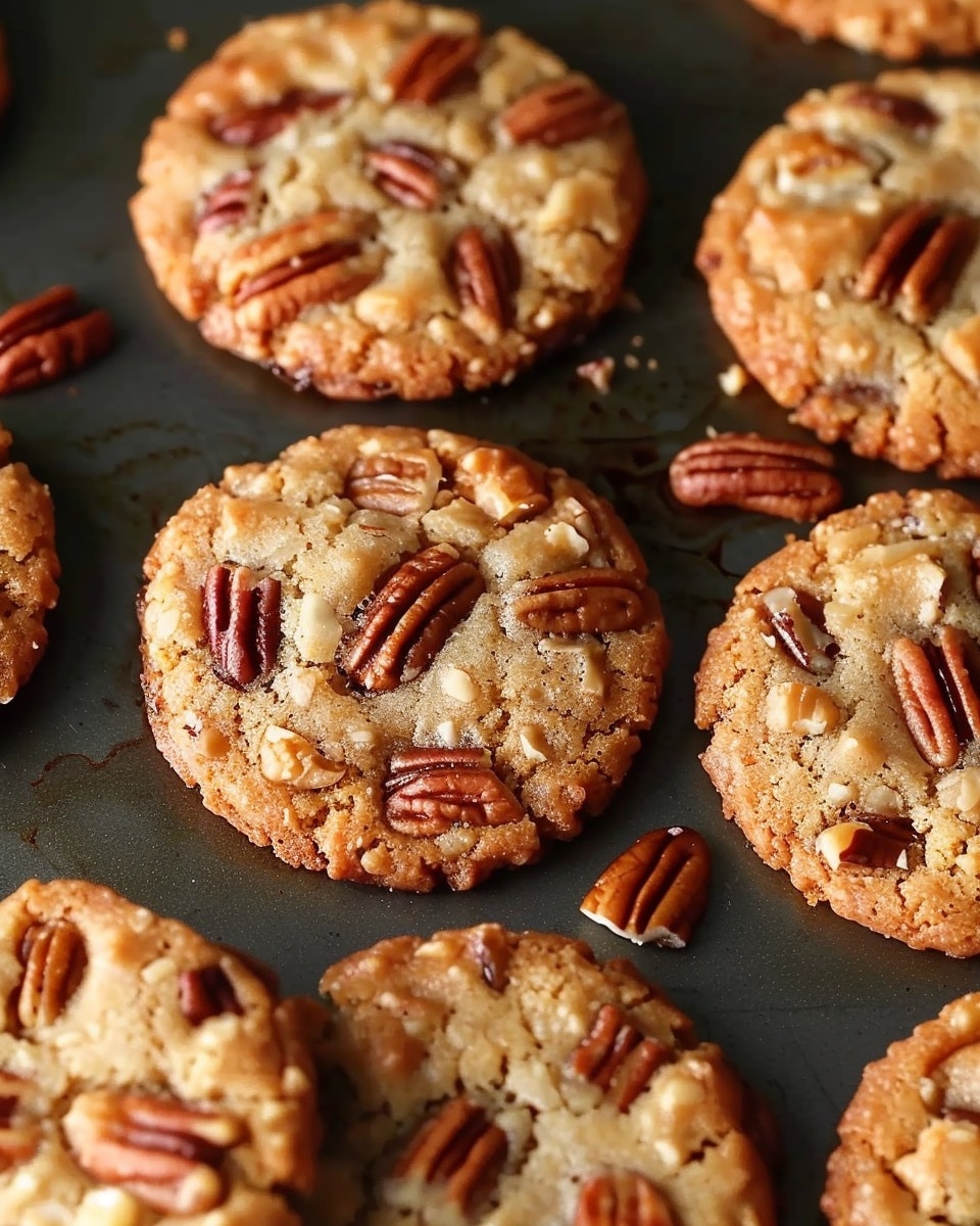 These pecan pie cookies combine the flavor of classic pecan pie with the convenience of a handheld treat. A soft, buttery cookie base holds a gooey pecan filling, making them perfect for holidays or everyday indulgence.