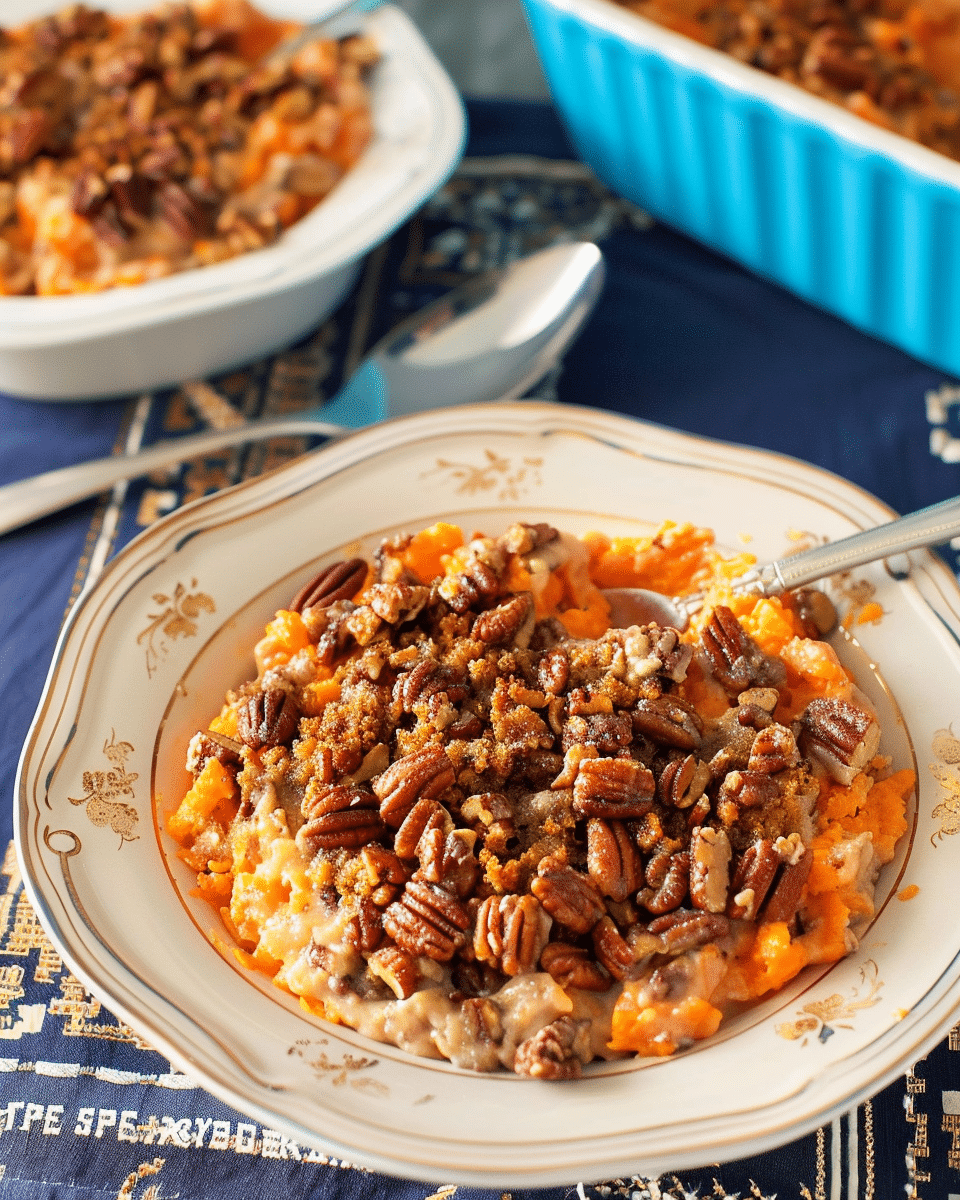 I love how this casserole balances flavor and texture without relying on processed sugar or heavy toppings. Roasting the sweet potatoes rather than boiling them enhances their natural sweetness and keeps the filling rich and thick. The pecan topping adds that perfect contrast with its nutty crunch and warm cinnamon spice. It’s also flexible enough to suit dairy-free, gluten-free, or even vegan diets with a few easy swaps.