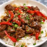 Pepper Steak Over Rice is a fast, flavorful stir-fry dish featuring tender beef, colorful bell peppers, and a savory-sweet sauce served over fluffy rice. It’s perfect for busy weeknights and packed with bold, comforting flavor.