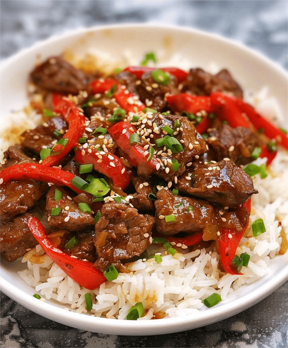 This recipe comes together fast, making it ideal for weeknight dinners. The beef stays tender thanks to quick searing, while the peppers and onions add freshness and crunch. The sauce is rich, savory, and slightly sweet, coating every bite beautifully. It’s also easy to customize with different vegetables or spice levels, and it pairs perfectly with simple steamed rice for a complete meal.