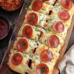 This pull-apart bread is everything you love about pizza—gooey cheese, savory toppings, and rich garlic butter—packed into a fun, shareable loaf. It’s beginner-friendly, comes together quickly using canned biscuit dough, and is always a crowd-pleasing appetizer for gatherings, game days, or family nights.